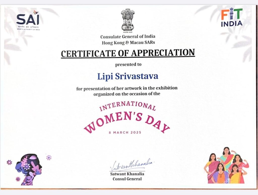 It was a true honour and moment of pride to have my painting, “Still Waters,” shortlisted and displayed at the International Women’s Day event organised by the Consulate General of India, Hong Kong & Macau SARs, alongside the beautiful works of many talented artists.